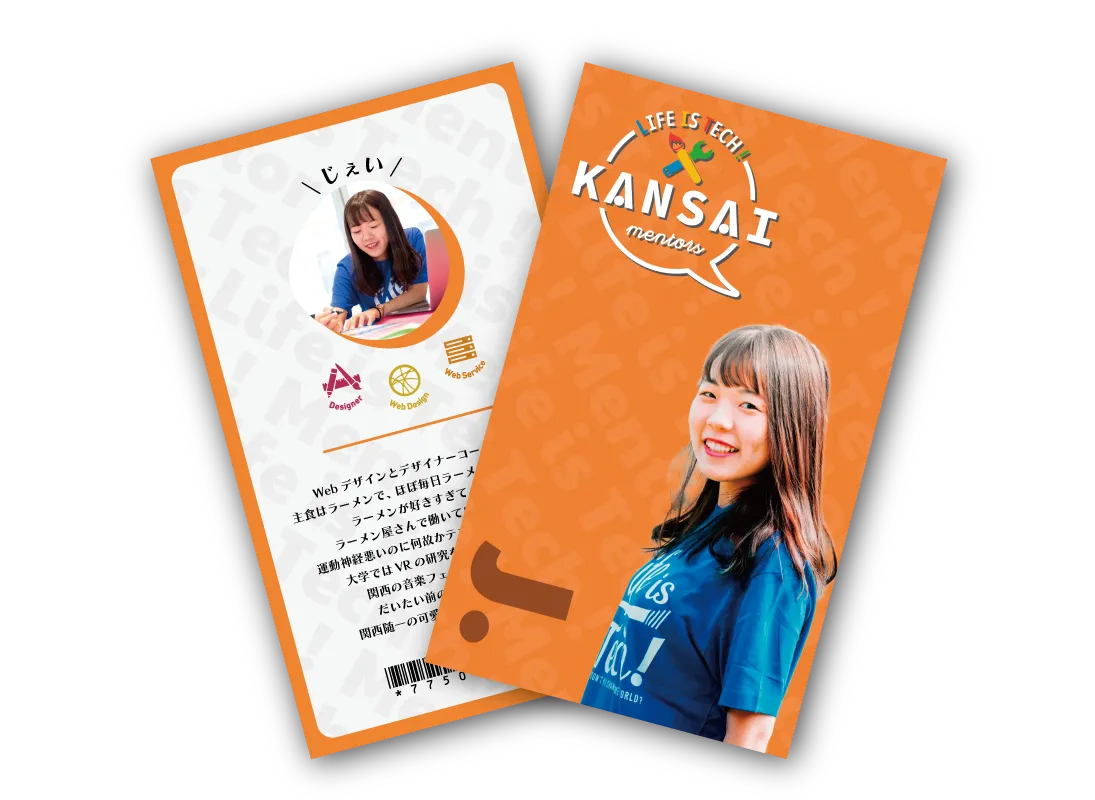 カラフルでかわいいカードに、プロフィールやスキル、SNSなどの情報が分かりやすく!